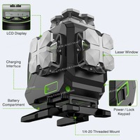 Huepar 12 Lines 3D Cross Line Laser Level Osram Green Beam With Remote Control & Li-ion battery For Tiles Floor Laser Tools Set