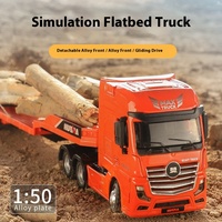 Huina 1:50 Full Scale Semi Alloy Flatbed Trailer Excavator Static Model Toy Car Children’S Gift Simulation Engineering Car Model $31.78