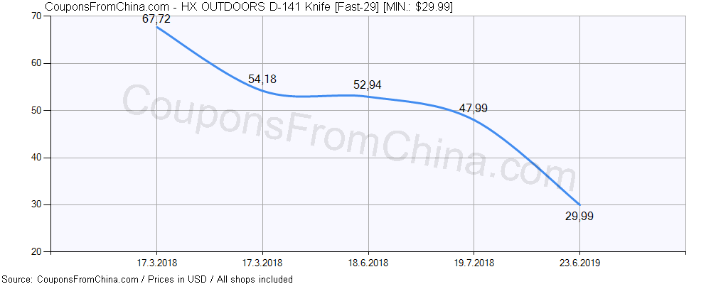 Do you need price history chart (for all/most countries) for HX OUTDOORS D-141 Knife [Fast-29]? There we go. The lowest price was: $29.99.