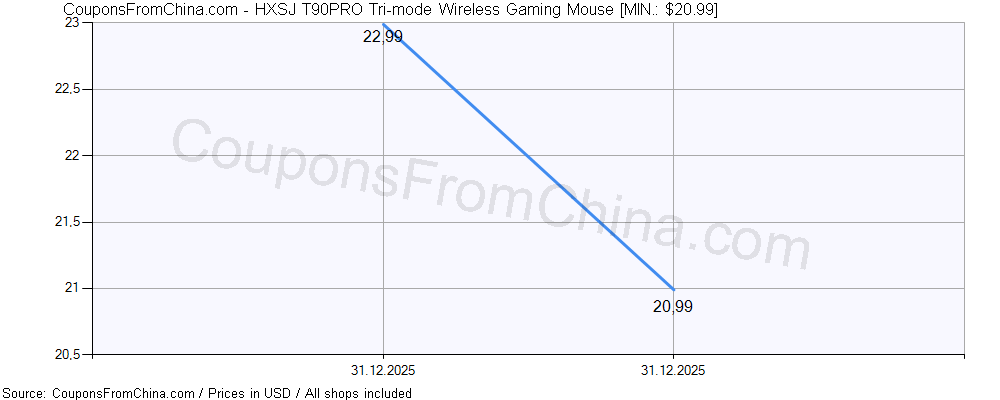 Do you need price history chart (for all/most countries) for HXSJ T90PRO Tri-mode Wireless Gaming Mouse? There we go. The lowest price was: $20.99.