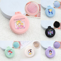 Disney Princesses Mini Cute Foldable Head Massager Air Bag Hair Comb Air Cushion Comb with Makeup Mirror Hair Styling Comb Tool