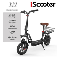 iScooter i12 12” Electric Scooter 500W Motor Battery 36V/7.5Ah Max Speed 25KM/H Seat And Basket Small Shopping Scooter $397.25