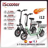 iScooter i12 12inch Electric Bike 500W 25KM/H 7.5Ah Folding E bike for Adults 35KM Max Range Electric Scooters with Seat Basket $357.25
