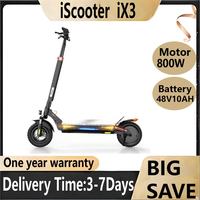IScooter IX3 Foldable E-Scooter 800W/48V/10AH Battery EScooters 10-inch Vacuum Off-road Tires Smart APP Link Scooters Electric