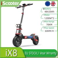 iScooter iX8 Electric Scooter 2*1200W Motor 48V 20AH Battery 12-inch Tire 60km/h Max Speed 70km Range Dual Hydraulic Disc Brakes $938.38