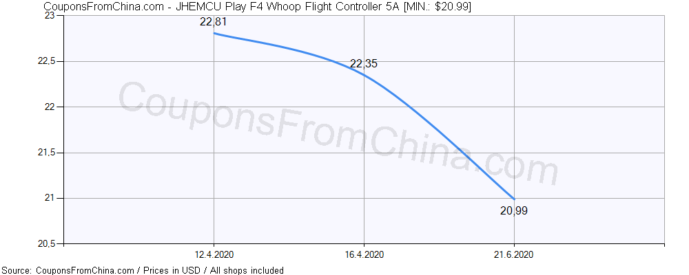 Price history (for all/most countries) for JHEMCU Play F4 Whoop Flight Controller 5A is here. The lowest price was: $20.99.