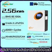 Jsdsolar 24V 100Ah LiFePO4 Lithium Battery Pack 2.56KWh Solar Battery with BMS 6000 + Cycle Parallel CAN RS485 for EU Inverter $396.48