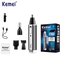 Kemei 4-in-1 Nose Ear Hair Trimmer with High-Quality Stainless Steel Blades Washable and Replaceable Trimming Head Compact Portable Design 60 minutes Working Time with Charging Indicator – USB