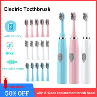 Electric Toothbrush IPX7 Waterproof Sonic Toothbrush DuPont Soft Bristles Adult Large Button Vibration Intelligent Toothbrush $2.51