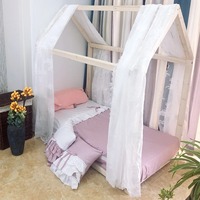 Bed Curtain Children’s Small Wooden Roof Tent Play House Bed Curtains Mosquito Net Princess Lace Kids Girl Bed Decoration $36.67