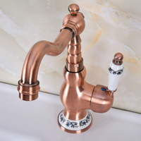 Antique Red Copper 360 Swivel Spout Kitchen & Bathroom Faucet / Wash Basin Mixer Sink Taps Cold and Hot Water Faucets tnf402