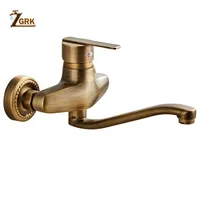 Wall Mounted Kitchen Faucet Single Handle Brass Antique Hot and Cold Water Tap 360 Swivel Long Spout Kitchen Mixer Tap