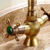 Basin Faucets Antique Brass Bathroom Faucet Natural emerald Tap 360 Degree Swivel Spout Double Handle Bath Kitchen Mixer Tap