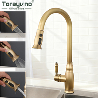 Torayvino Antique Brass Kitchen Faucet Pull Out 360 Rotate Spout Faucets Single Hole Swivel Hot and Cold Water Sink Mixer Tap