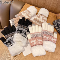 Cute Knitted Fleece Lined Cycling Gloves Thickened Winter Women’s Touchscreen Sensitive Warm Knit Gloves For Students