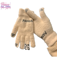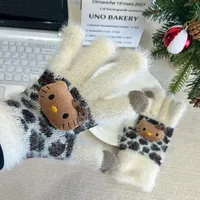 Sanrio Hello Kitty Leopard Print Glove Cartoon Kitty Cat Doll Thickened Knitted Split-finger Gloves Maillard Touch Screen Gloves