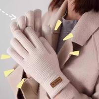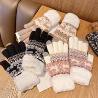 Acrylic Fiber Cute Knitted Fleece Lined Cycling Gloves Thickened Winter Women’s Touchscreen Sensitive Warm Knit Gloves Students