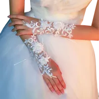 New Arrival Ivory Bride Gloves Lace Appliques 1 Pair Elegant Ivory Short Paragraph Lace Fingerless Rhinestone Bridal Gloves $3.51