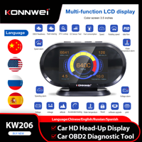 KONNWEI KW206 Car OBD2 Diagnostic Tool HUD 2in1 Fault code clearing 02 Sensor Test Speeding alarm DTC Lookup Mileage Auto Tools $40.33