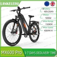 [EU DIRECT] LANKELEISI MX600PRO Electric Bike 48V 20AH 500W 27.5inch 60-150KM Max Mileage 150KG Max Load Electric Bicycle – Black+Orange
