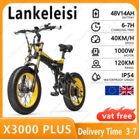 Lankeleisi X3000 Plus Electric Bicycle 1000W Motor,17.5Ah Battery,Hydraulic Brake,20*4.0 Tire,120KM Range,Foldable E-bike $1750.26