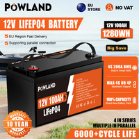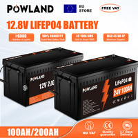 POWLAND LiFePO4 12V 200Ah 100Ah 300Ah Battery Pack 25.6V 2560Wh GradeA 6000+Cycles IP65 For RV Solar Rechargeable Battery NO TAX