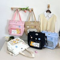 Fashion Transparent Star Itabag Badge Display Solid Color Canvas Crossbody Bag Large Capacity Nylon Student School Bag Travel $10.62