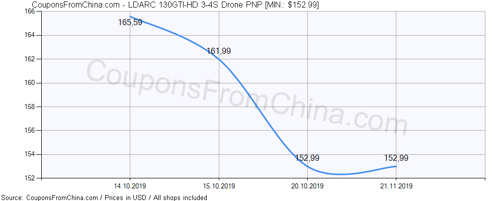 Price history (for all/most countries) for LDARC 130GTI-HD 3-4S Drone PNP is here. The lowest price was: $152.99.