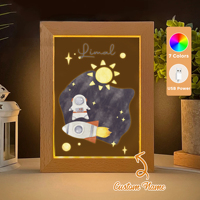 2D Flat Custom Name Rocket astronaut LED Acrylic Night Light Wood Photo Frame 21x17cm Cartoon Children Bedroom Gifts Home Decor $11.91