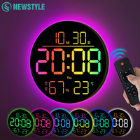 10 Inch Round RGB LED Digital Wall Clock with Color Changing&Remote Control Ambient Light Electronic Thermometer Alarm Clock $44.97