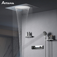 Rain Waterfall Jet 23*15 Inch Modern Music LED Shower Head Temperature Display Hot&Cold Water Bathroom Shower Faucet