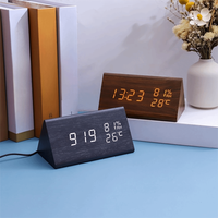 Triangular Wooden LED Alarm Clock Adjustable Brightness Voice-activated Electronic Alarm Clock Humidity and Temperature Display