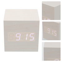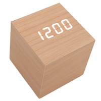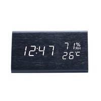 AB25-Wooden Square Desk Clock LED Digital Display Alarm Clock Temperature Display Clock For Bedroom Decoration Clock