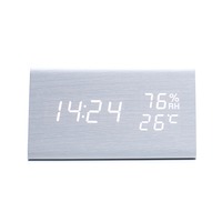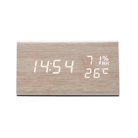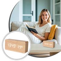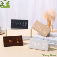Alarm Clock LED Wooden Watch Table Voice Control Digital Wood Temperature Digital Bamboo Square Table Desktop Clocks