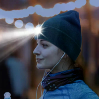 LED Upgraded Version Knitted Hat with Light for Night Running Outdoor Glowing USB Rechargeable Woolen Hat Breathable Warm