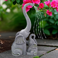 Solar-powered resin ornament, mother and baby elephant water fountain with LED lights, garden decoration, outdoor statue.