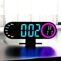 USB Powered Digital Alarm Clock with RGB Mood Light TEMP Date Week 2 Alarm 12/24H Snooze Table Clock Night Mode LED Mirror Clock $12.83