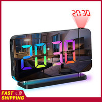 USB Charging Port RGB Projection Clock For Easy Charging LED Large Screen Mirror Digital Alarm Clock $20.45