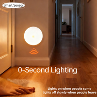Smart Human Motion Sensor Light Round Magnetic Night Light for Corridor Cabinet Bedroom USB Rechargeable LED Bedside Night Lamp $6.23