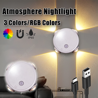 4 Head Wall Light RGB Gradient Ambient Smart Human Sensor Magnetic USB Creative Home Mood Lighting for Cabinet Hallway Stair $5.39