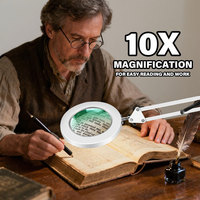 Long Swinging Arm 10X LED Magnifier 3 Colors Illuminated Magnifying Glass Soldering Tool Table Lamp for Close Work Repair