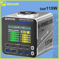 [GaN Tech] Mechanic G-Power 160W 8-Port USB PD Charger with Smart Display Screen 4USB-A+4USB-C PD3.1 QC3.0 Fast Charging Desktop Charger Station with 15W Magnetic Wireless Charging Pad for iPhone 17 17Pro 16 Pro Max 15 14 for Xiaomi 17pro – Grey