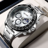 MEGIR Men Fashion Sport Quartz Watches Big Dial Multi-functional Watch Chronograph Waterproof Luminous Wristwatches Date Clock – Black+Orange