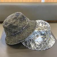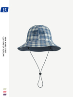 Retro bucket hat versatile show small face new plaid basin hat men and women the same style