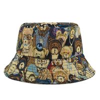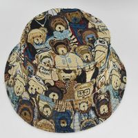 Cartoon Little Bear Fisherman Hat Jacquard Face Covering Sun Protection Hat Foldable Cotton Hemp Cloth Basin Hat Men