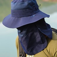 Summer Quick-drying Boonie Men Women Hat Outdoor Face Mask Wide Brim Bucket Hiking Camping Hat Removable Big Eaves Hat