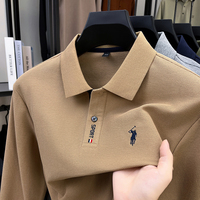 100 Cotton Polo Shirt Spring and Autumn Long Sleeve Men’s T-shirt Embroidered New Business and Leisure Solid Color Loose T-shirt