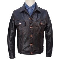 Men’s Black Top-Grain Cowhide Storm Rider Leather Short Jacket Contrast Stitch Denim Style Factory Direct Sales plus size 5XL $194.92
