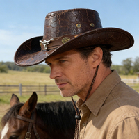 Classic Cowboy Hat Vintage Cracked PU Leather Western Sun Cap Metal Decor Fedora Wide Brim Men Outrider Headwear $4.63