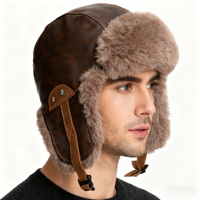 Men Earflaps Hat Retro Faux Leather Ear Protection Warm Berets Newsboy Hats Painter Cap – Brown XL